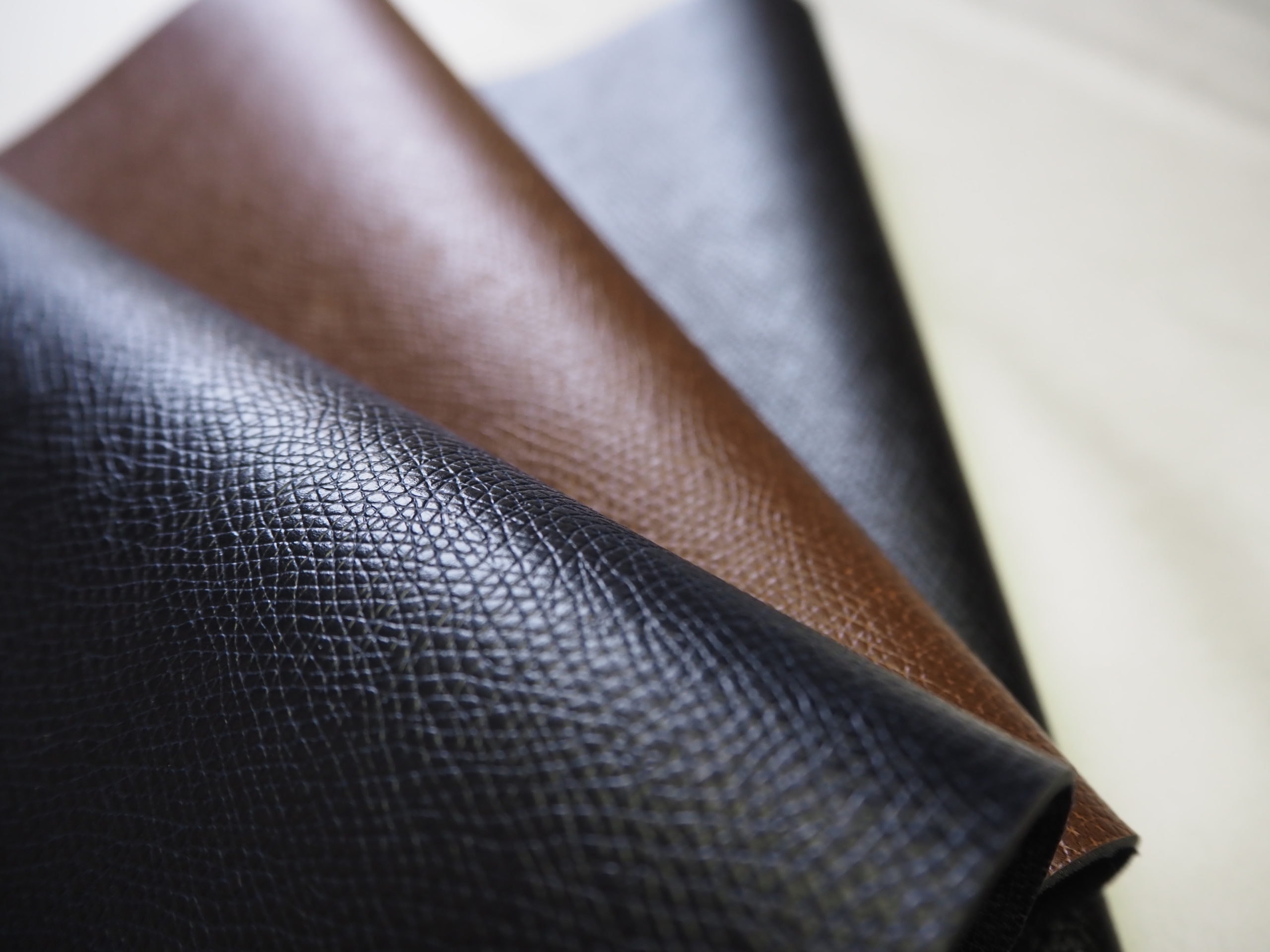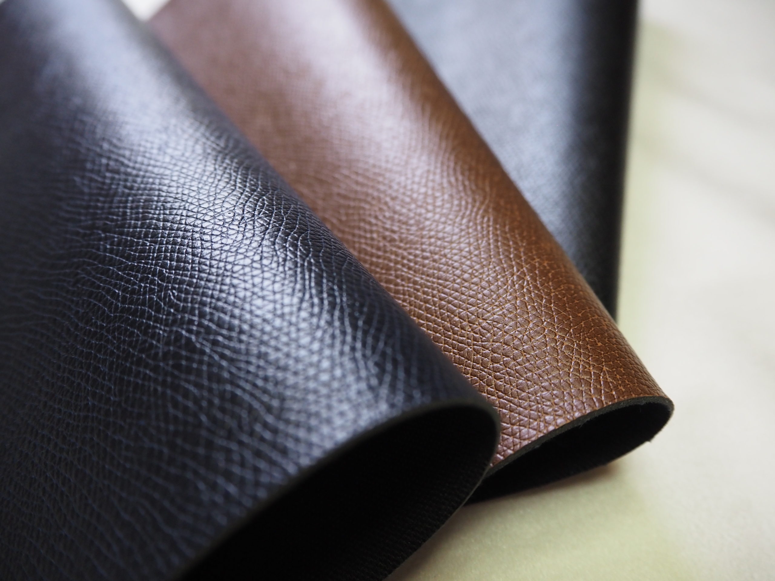 細かな絞による落ち着いた表面感が特長です。ハリとコシがあり、形状をきれいに保ちやすいため、安定した仕上がりが求められる用途に適しています。耐久性にも優れ、日常使いのアイテムに安心して使用できる素材です。