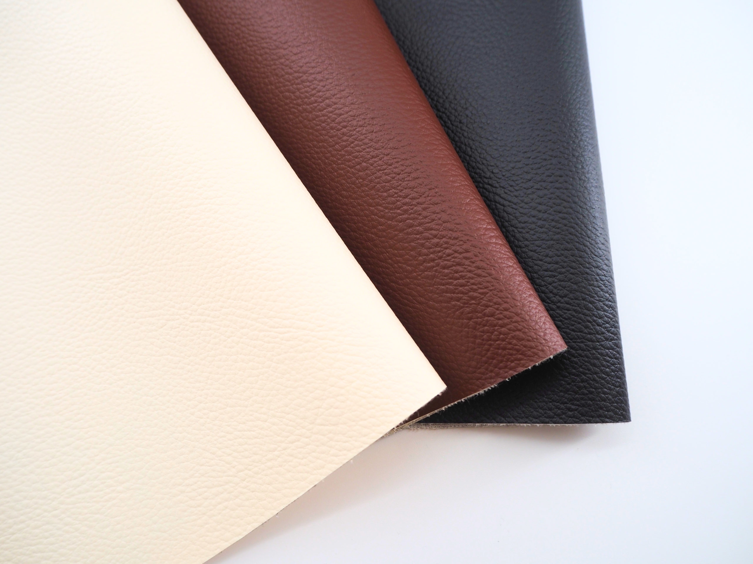 耐久性に優れたPVC製の合成皮革です。表面にシボ加工を施し、実用性の高い質感と適度なグリップ性を備えています。バイクシート用途でも採用実績があり、屋外環境下での使用にも対応可能です。さらに難燃剤を配合し、安全性にも配慮した仕様となっています。強度・機能性・取り扱いやすさを兼ね備えた実用用途向け素材です。