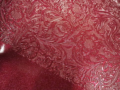 型押し(エンボス加工)とは、金型を用いて素材表面に凹凸をつけ、柄・文字・質感を立体的に表現する加工です。単に模様を付けるだけでなく、触れたときの感触・素材の存在感までをコントロールできるのが特長です。