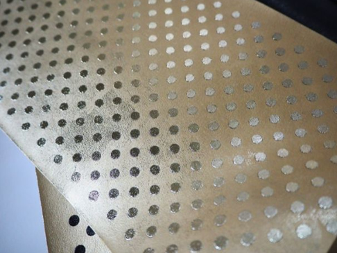 金属的な輝きや繊細な柄表現が可能で、ロゴや装飾モチーフ、縁取りなどを際立たせる意匠として用いられます。