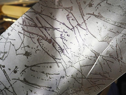 ドット柄やランダムな線柄など、柄そのものを表面に転写することで、均一な光沢とは異なる表情を生み出します。